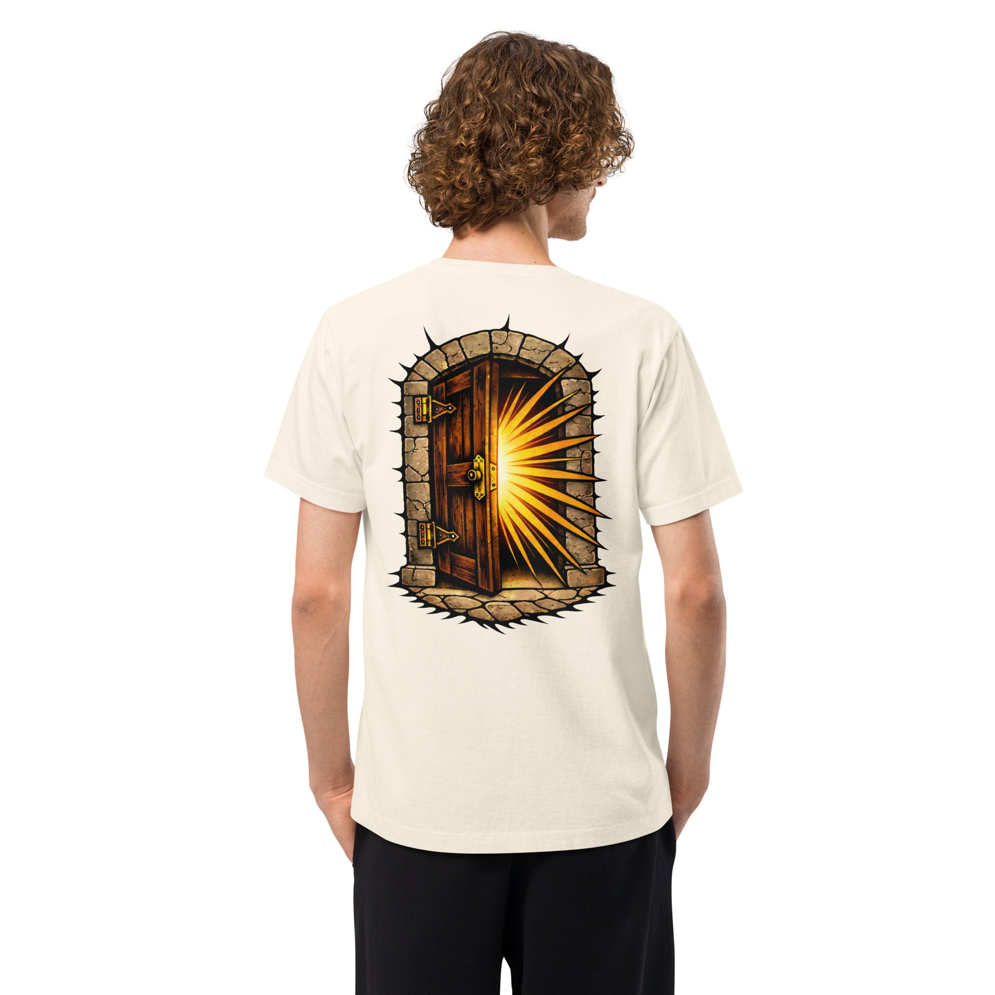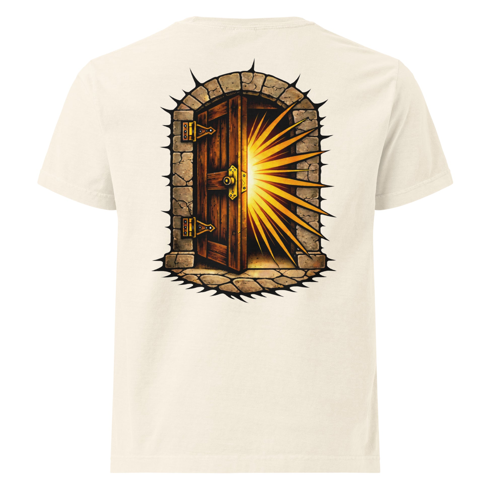 Printed on mid-heavyweight 6.5 oz, garment-dyed tees with a washed finish.